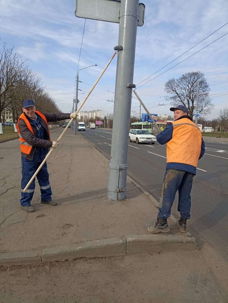 Работники предприятия регулярно поддерживают чистоту на прилегающих и закрепленных территориях, чтобы подготовить город к весне.На сегодня основной фронт работ - это покраска опор контактнрй сети.